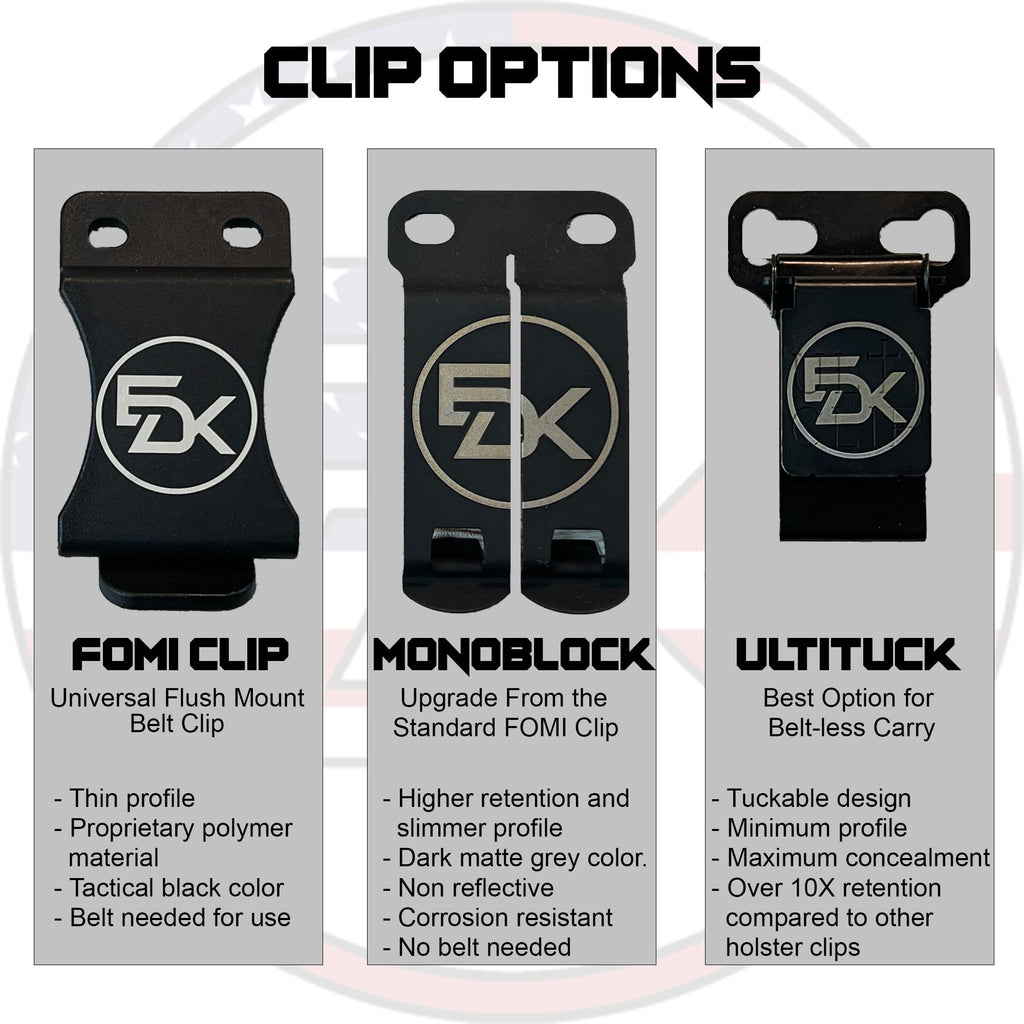 Clip / Belt Options - We give you the option to select your clip / belt attachment style that best fits your EDC needs. This is an upgrade to the plastic fomi clip, if purchased you will receive the upgraded clip only. Available options include, EDK Fomi clipEDK Monoblock, and UltiTuck.