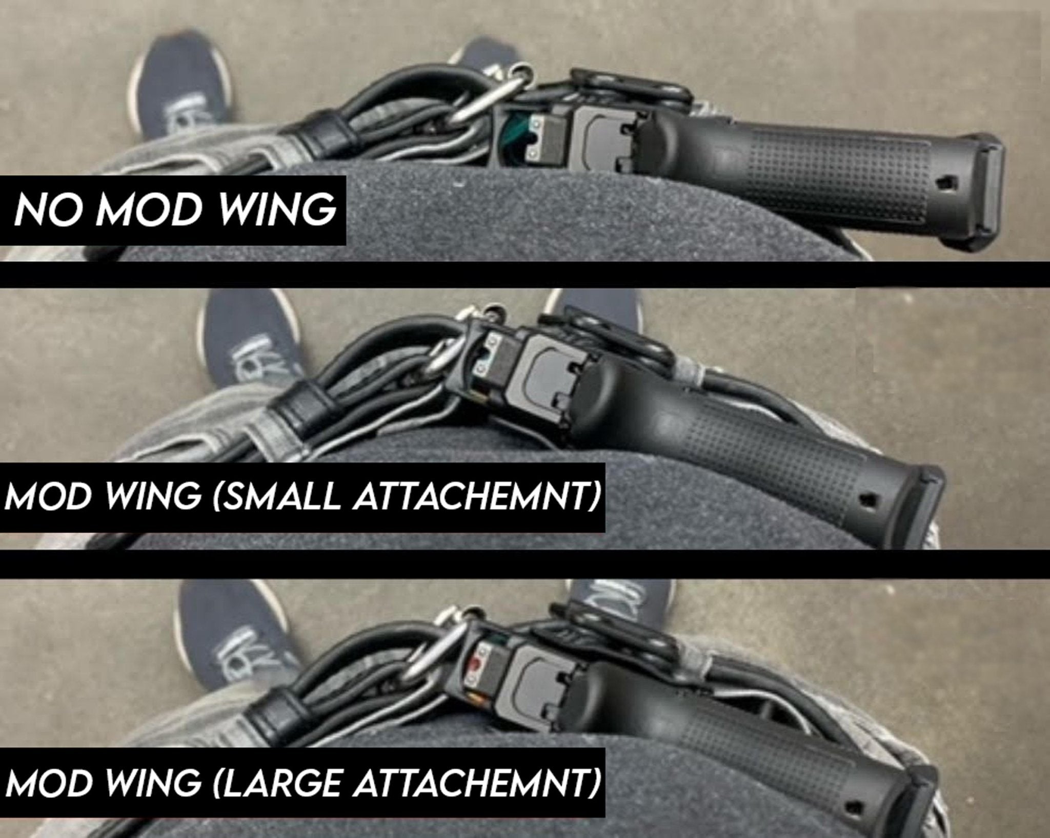 Mod Wing - The optional Mod Wing attachment allows your firearm to be concealed even better! The Mod Wing works by making contact with the back side of your belt and pants which pulls the grip of your firearm closer to your body.